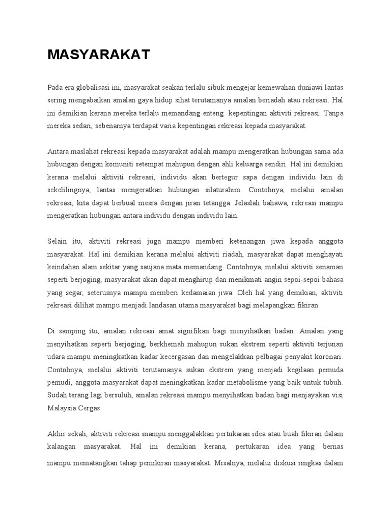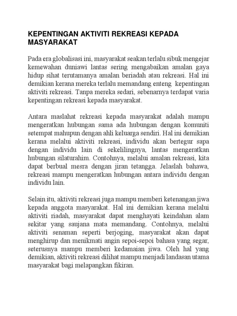 Kepentingan Aktiviti Rekreasi Kepada Masyarakat Pdf